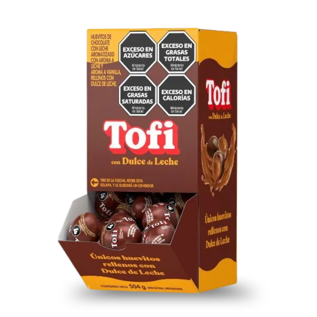 Pack con 2 Huevos Tofi con dulce de leche (115 g c/u) + caja de huevitos rellenos (60 un x 8,4 g), con chocolate suave y centro cremoso, ideal para regalar o compartir en Pascuas.
