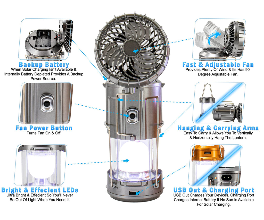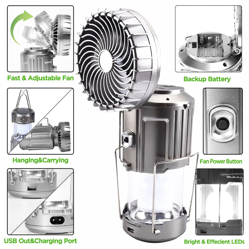 Linternas solares portátiles para acampar, ventilador eléctrico LED de  1500mAh, tienda colgante de energía Solar, lámpara de emergencia recargable  para exteriores con ventilador - AliExpressĐèn măng xông đi bão GSH 9299 kèm quạt